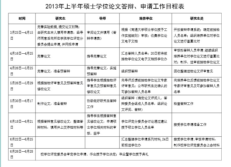 研究生处《2013年上半年硕士学位论文答辩、申请工作日程安排表》