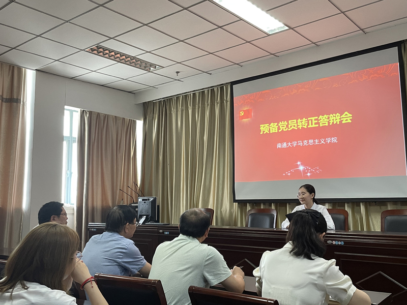 本次答辩分为个人陈述、现场问答和现场评议三个环节。个人陈述环节,申请转正的六位预备党员周慧敏、冯丹、罗懿、吴建文、杨兰、王健汇报了一年预备期内在思想、学习、工作、生活等方面的表现,对一年来取得的成绩以及存在的问题进行回顾、总结和分析。答辩组成员对四位同学党史学习情况、参与志愿服务情况、模范作用发挥情况等进行现场提问,对他们的答辩情况进行评议。最后,吴日明老师和董红燕老师充分肯定了六位答辩人在预备期内的优异表现,并寄语此次参加转正答辩的六位预备党员,坚定理想信念,牢记入党宗旨,履行党员义务,发挥先锋模范作用,争做一名优秀的共产党员。