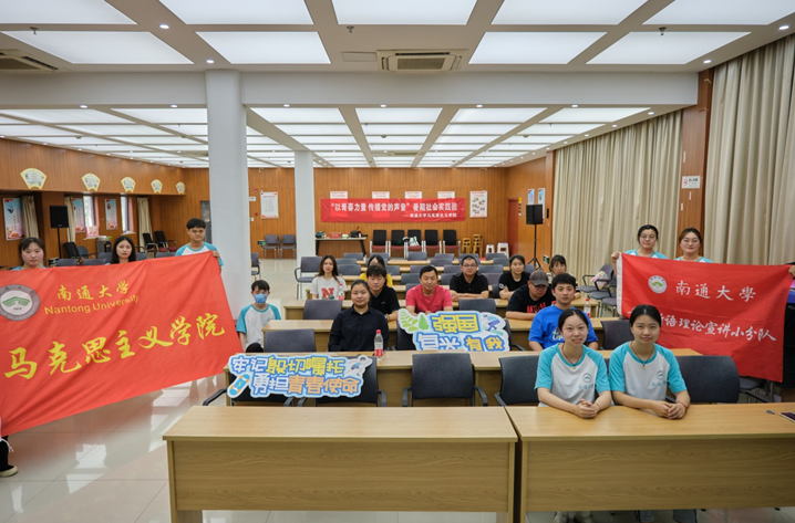 7月2日,bbin宝盈集团“青年新语理论宣讲小分队”社会实践团队联合崇川经济开发区世伦桥、盘香沟、青龙桥、海洪4个社区的党委、团委、关工委、新时代文明实践站开展理论宣讲活动。